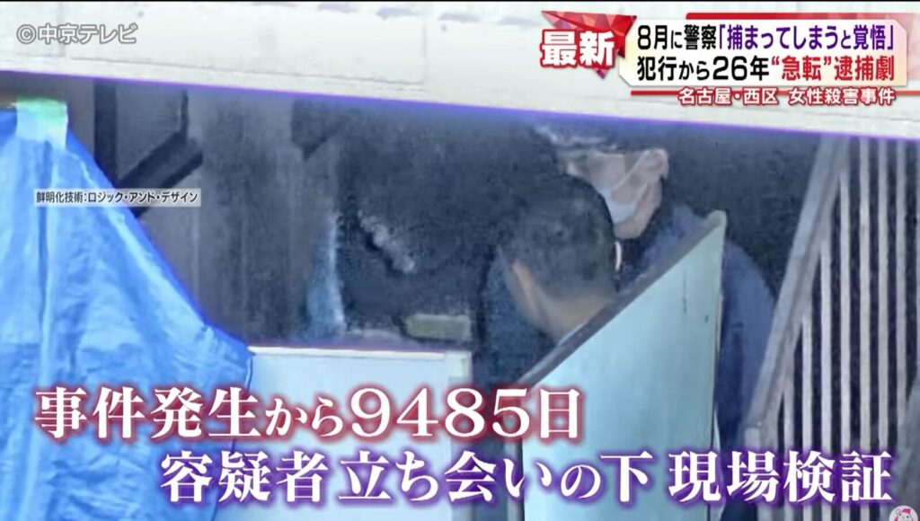 こちらの画像が中京テレビで報道された、安福容疑者の自宅を家宅捜索する画像です。
