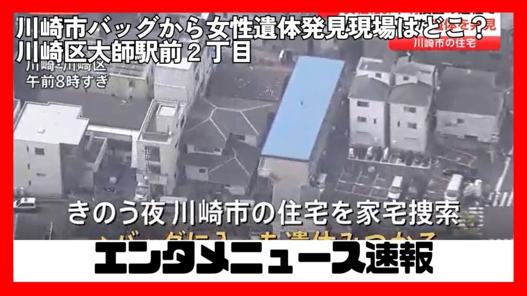 川崎区大師駅前の住宅から一部白骨化した遺体がバッグから発見される事件が発生しました。