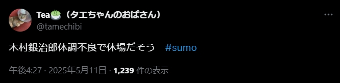 5月11日にこのような投稿がされています。実際休場されていたようです。